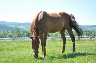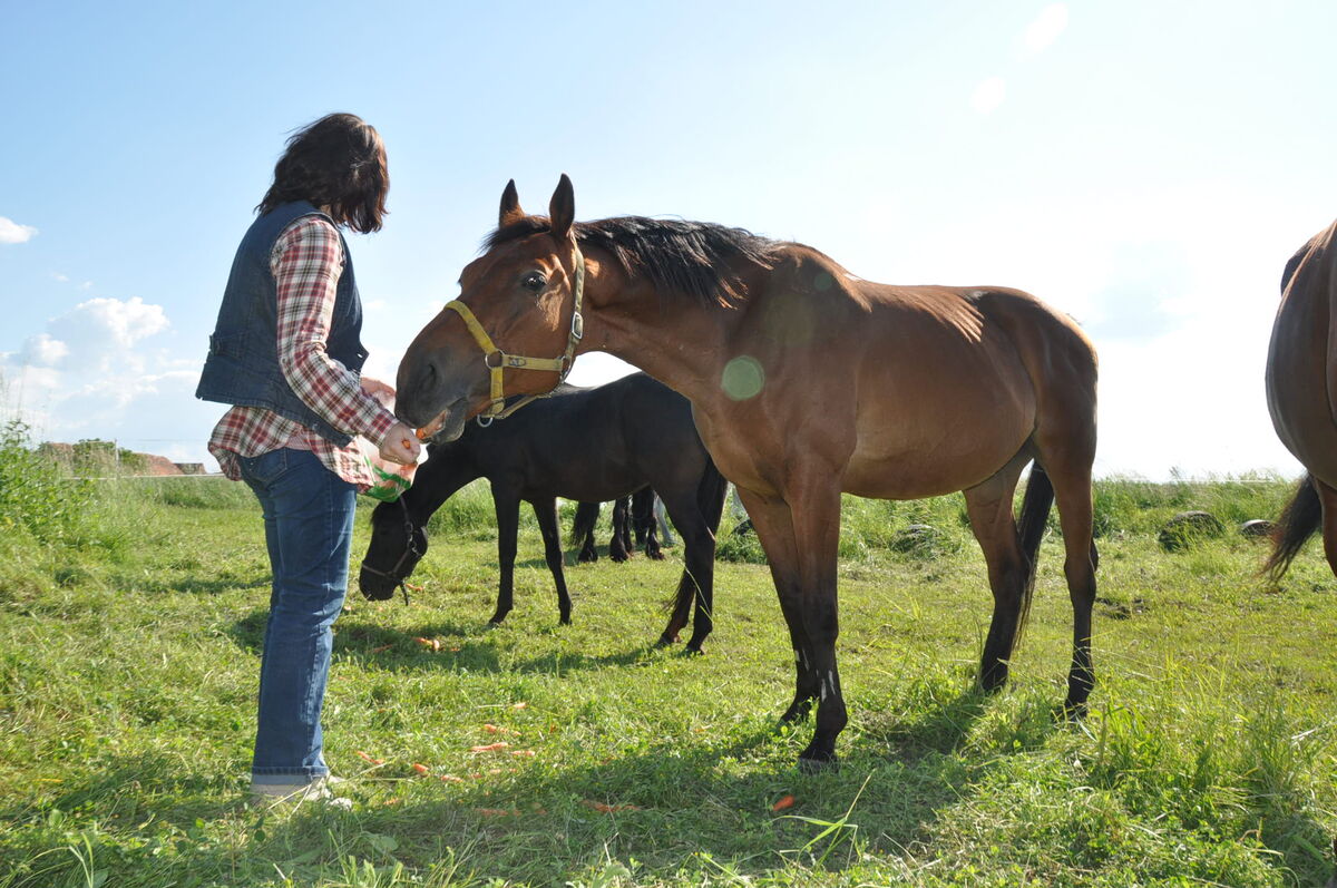 Jadeit. Folblut w rekreacji? To właśnie on, przez wiele lat, dzielnie i bez kontuzji uczył nas jak to jest dosiadać prawdziwie gorącokrwistego konia. Jego upór i mocny charakter pomogły w dobrej aklimatyzacji na przedgórzu izerskim. Szybko się okazało, że Jadeit jest koniem niesamowicie towarzyskim i potrzebuje przyjaciela, dlatego po odejściu Graba, szybko dojechał do niego Credit. Ale jak to w końskim świecie bywa, chemia ma znaczenie i od much odgania dzisiaj Jadeita ogon Molino. Ale cała trójka trzyma się razem:)